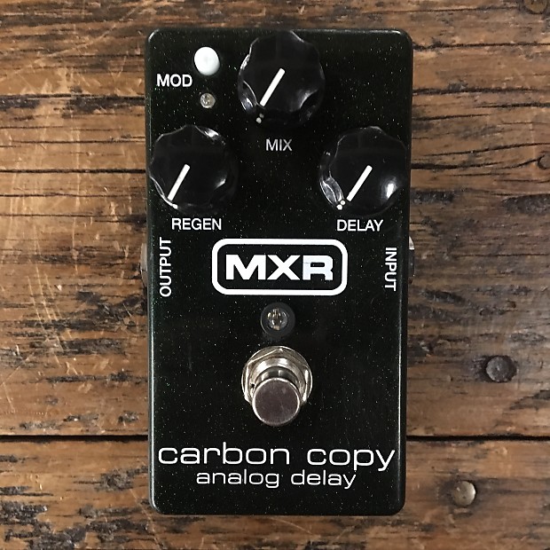 Le delay est un MXR Carbon Copy, une référence qui semble indétrônable. Derrière un aspect plutôt classique se cache un delay très efficace, combinant de nombreuses possibilités en termes de répétitions ainsi qu’une modulation interne pour détériorer les échos. Certains ont tendances à le trouver un peu « dark », mais à part ça peu de critiques à son égard.
